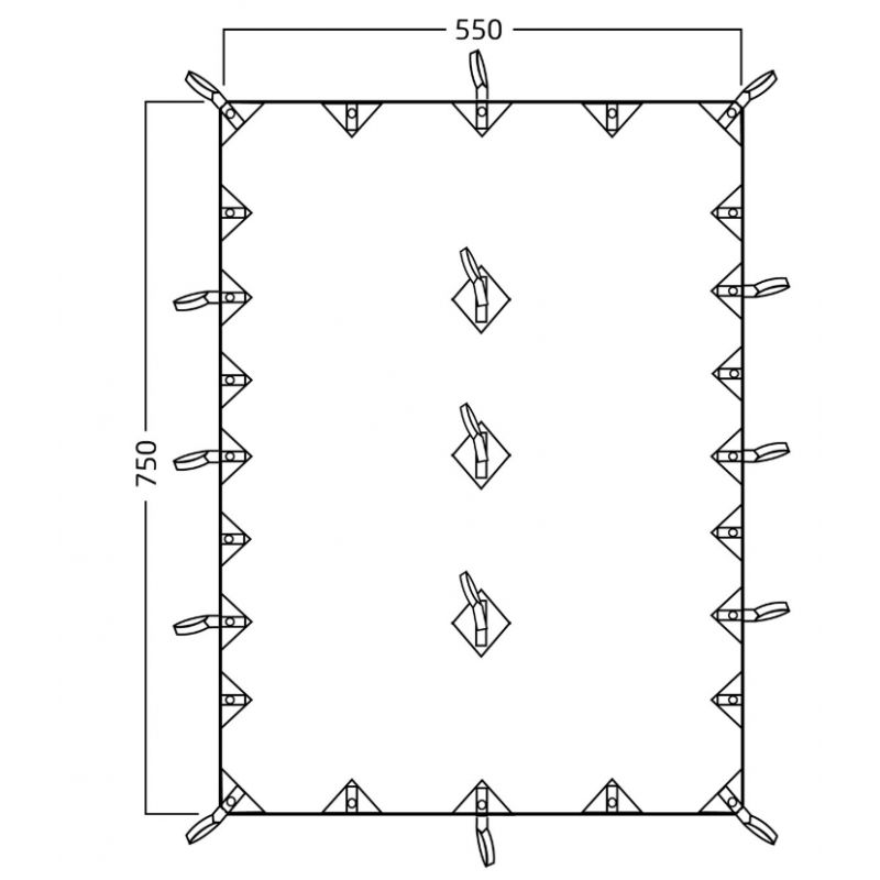 - - Trois points centraux renforcés avec sangle et patch en tarpaulin pour diverses options d'attache