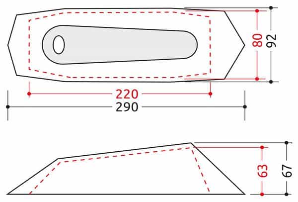 La toile moustiquaire assure une ventilation optimale, tandis que le double toit offre une excellente isolation thermique, vous protégeant des intempéries tout en maintenant un confort intérieur. Les dimensions extérieures de la tente sont de 92 x 290 cm avec une hauteur de 67 cm, tandis que l’espace intérieur mesure 80 x 220 cm et 63 cm de hauteur, offrant suffisamment d’espace pour vous reposer après une journée de randonnée.