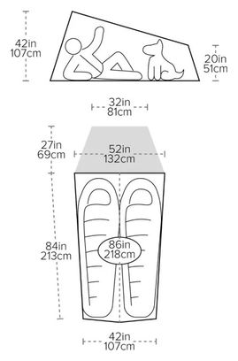- - Double toit et sol en tissu HyperBead ™, nylon ripstop 15D recyclé avec un revêtement imperméable de (1500 mm) sans PFAS