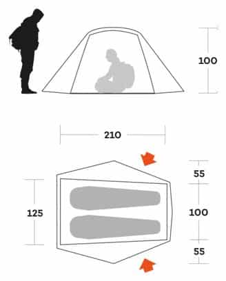 L’armature de la tente est constituée d’arceaux en alliage d’aluminium trempé 7001 T6, qui sont à la fois légers et résistants. Les trois arceaux préassemblés facilitent le montage, et leur code couleur permet une installation rapide et intuitive. La tente est également équipée de deux absides pour un espace de rangement supplémentaire, ainsi que d’une porte en tissu moustiquaire pour une ventilation optimale. Les ouïes d’aération à l’avant et à l’arrière favorisent la circulation de l’air, réduisant ainsi la condensation à l’intérieur.