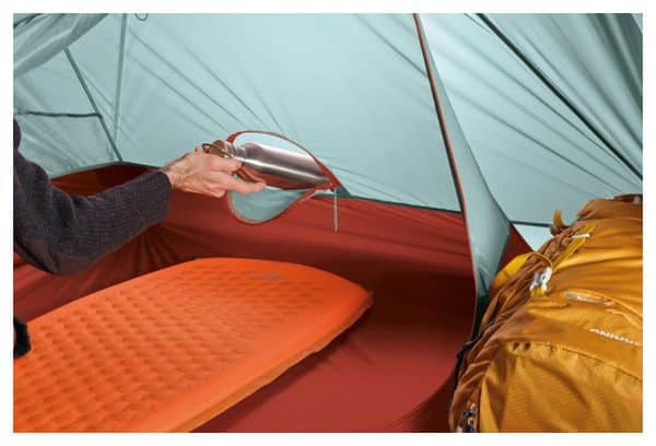L’accès à l’abside est facilité par une petite porte zippée positionnée au sommet de la chambre, permettant d’atteindre facilement vos affaires sans avoir à ouvrir la porte principale. L’abside est également dotée d’une porte en tissu moustiquaire et d’ouïes d’aération antérieure et postérieure, garantissant une bonne circulation de l’air et une protection contre les insectes.
