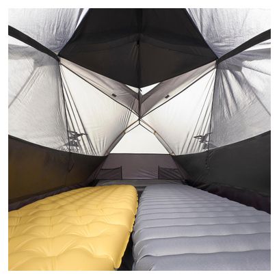 Pour un montage et un démontage simplifiés, la tente est dotée d’une structure dôme avec un arceau unique. Le double-toit et la chambre sont séparés, ce qui facilite le montage traditionnel. Les grandes ventilations sommitales et les portes avec moustiquaires assurent une bonne aération, limitant ainsi la condensation à l’intérieur.