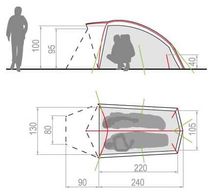 L’espace intérieur est généreux, offrant une surface au sol de 4,1 m² et une tente intérieure de 2,6 m², ce qui garantit un confort optimal même lors de longues nuits en montagne. Les inserts supplémentaires au niveau des pieds ajoutent une touche de confort supplémentaire, tandis que les ouvertures de ventilation réglables assurent un climat intérieur agréable, même par temps chaud.