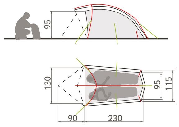 Sa conception spécifique permet d’accueillir confortablement deux personnes, tout en maximisant l’espace au niveau des pieds grâce à une armature inclinée. La tente est équipée d’une abside pour le rangement de votre équipement, et l’ouverture de ventilation, protégée de la pluie, est réglable via une fermeture éclair, vous permettant d’ajuster la circulation de l’air selon vos besoins.