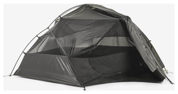 Pour un montage et un démontage simplifiés, la tente dispose d’une structure dôme avec un arceau unique. Le double-toit et la chambre sont séparés, facilitant ainsi l’installation. Pour une bonne ventilation, elle est dotée de moustiquaires sur les portes et de deux grandes ventilations sommitales, permettant de réguler la circulation de l’air et de limiter la condensation.