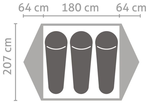 Sa construction en dôme stable à double paroi, associée à des arceaux en aluminium et en fibre de verre composite, garantit une excellente résistance aux intempéries. Le double toit en polyester indéchirable et imperméable, avec une colonne d’eau de 1500 mm, protège efficacement contre la pluie, tandis que le sol, avec une colonne d’eau de 3000 mm, assure une isolation optimale du sol.