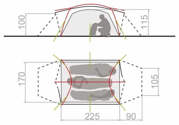 Pour un confort maximal, cette tente dispose de deux entrées, permettant une circulation aisée et évitant que les occupants ne se gênent mutuellement. Les ouvertures d’aération étanches à la pluie contribuent à maintenir un climat intérieur agréable, même lors de conditions climatiques difficiles. Le montage de la tente est simplifié grâce à son armature extérieure à fixation élastique, permettant un montage rapide sans enfilage fastidieux. La liaison élastique entre la tente extérieure et l’armature compense les effets des rafales de vent, garantissant une stabilité accrue.
