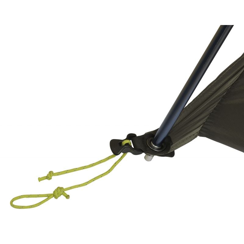 • - La stabilité de la tente est assurée par le système de fixation au sol avec cordelette réglable qui vous permet de placer facilement chaque piquet au meilleur endroit, sans avoir besoin de déplacer la tente