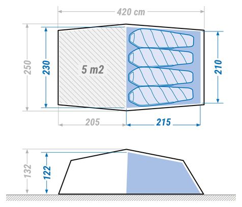 - - Description : Une équipe passionnée de trekking en montagne a imaginé cette tente tunnel prémontée pour 4 personnes recherchant de l'habitabilité et un grand espace de vie.