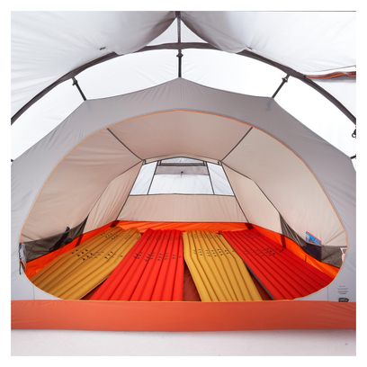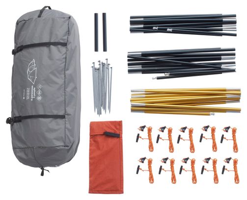 Le montage et le démontage de la tente sont simplifiés grâce à la chambre et au double-toit prémontés, ainsi qu’aux fourreaux pour les arceaux. Pour une ventilation optimale, la tente est équipée de moustiquaires sur la porte et dans la chambre, et le double-toit peut être roulé pour favoriser la circulation de l’air.