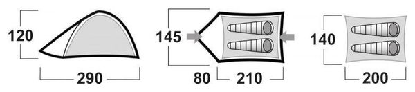 La chambre de la tente mesure 200 x 140 cm, offrant un espace suffisant pour accueillir confortablement deux personnes. L’abside de 80 cm permet de stocker votre équipement à l’abri, tout en facilitant l’accès à vos affaires. Avec un volume de rangement compact de 45 x 13 cm, la tente se transporte facilement, et son poids de 3600 g en fait un choix léger pour les treks prolongés.