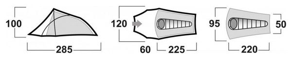 Les dimensions de la tente, mesurant 120 x 285 x 100 cm, offrent un espace suffisant pour un utilisateur tout en restant compacte une fois pliée, avec des dimensions de 50 x 13 cm. Les arceaux en aluminium Dural de 8,5 mm de diamètre assurent une solidité et une durabilité optimales, même dans des environnements extrêmes. La face externe en polyester Ripstop et la face interne en nylon 190T, accompagnée d’une moustiquaire, garantissent une bonne respirabilité tout en protégeant contre les intempéries.