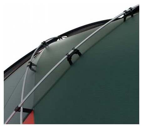 Pour un montage rapide et efficace, la structure de la tente utilise un système d’arceau-aiguillon, tandis que la chambre se fixe facilement grâce à un système bouton-anneau. Ce design permet un démontage tout aussi rapide, idéal pour les trekkers pressés.