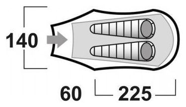 Les dimensions de la tente, mesurant 140 cm de hauteur, 285 cm de longueur et 110 cm de profondeur, offrent un espace confortable pour deux personnes. Une fois pliée, elle se compacte à seulement 40 x 12 cm, facilitant son rangement dans un sac à dos. La structure est soutenue par des arceaux en aluminium dural de 8,5 mm de diamètre, assurant une stabilité optimale et une résistance au vent, ce qui est essentiel lors de vos aventures en pleine nature.
