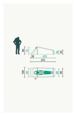 La Gossamer est équipée d’une entrée unique et d’une abside, offrant un espace suffisant pour ranger vos affaires. Les dimensions de la tente intérieure sont de 225 x 90/80 x 75/40 cm, offrant un espace confortable pour une personne. Une fois emballée, elle mesure 44 x 14 cm, facilitant son transport.